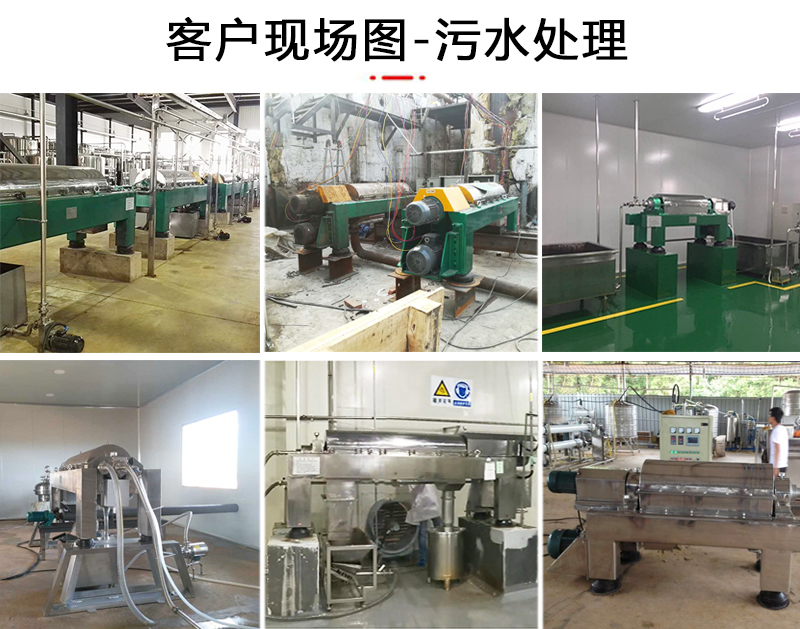 处理过的物料:污泥脱水(氢氧化物污泥、二沉池污泥等),污水处理(市政污水、工业污水、淀粉污水、化工污水等),污水净化,废水处理(酒厂废水、中药废水、药厂废水等),饮用水处理,工艺水处理,淀粉回收,残渣脱水,淤泥脱水,肥料加工,发酵残渣处理