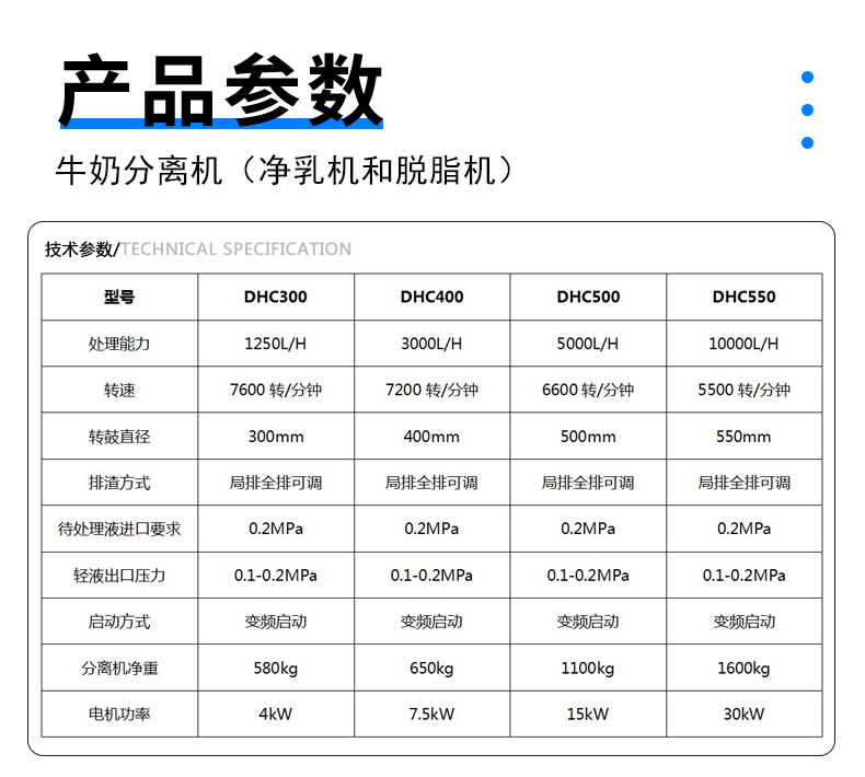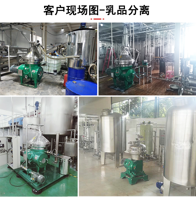 处理过的物料:牛奶脱脂、牛奶净乳、乳清分离、酪乳分离、乳品乳清澄清、乳制品脱菌、奶油分离、还原奶、发酵酸奶等。